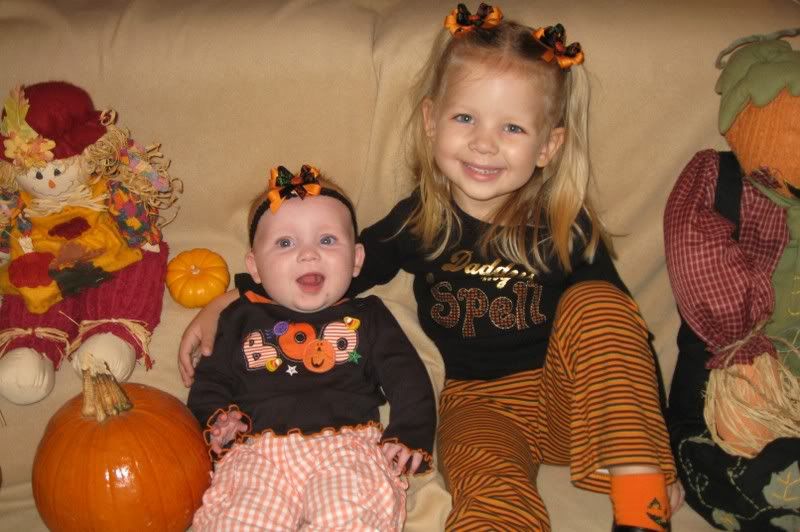The local pumpkin patches are starting to stock up with pumpkins for the season. We had an 'assignment' to have Brooke bring a small pumpkin to school this week, so we headed out to find one and of course just in case the perfect photo op happened upon us, I had them in their Halloween attire...yea..cuz I'm a dork like that. :)Anyway, we thought about buying this pumpkin, but decided Ms Lydia might've had something smaller in mind...