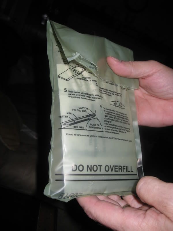 It's actually pretty cool in that the bag to 'cook' the chili macaroni stuff actually boiled the water and did cook it. Pretty cool. I tried to capture the bubbles. All you do is add water (any temperature) and it does this (I'm not sure if you can quite make out the bubbling of the water inside the bag):