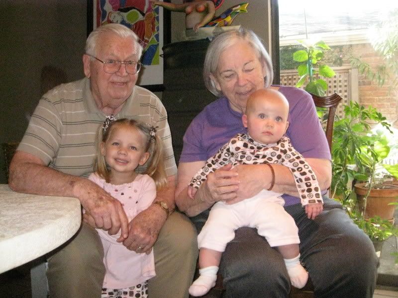 And in follow-up news, we travelled to Houston today to see some long-distance family. Now, when I say long distance, I mean long distance. Aunt Bettye and Uncle John are in Texas for my aunt's funeral from Maryland. Since they made it to Texas, we figure we can drive to Houston to see them. The last time we saw them Brooke was probably about a year old, maybe. So, here they are with both the girls. And yes, it is Aunt Bettye and Uncle John - in that order. At least she has always come first when referring to the two, at least as long as I have been alive. Not sure why - but it just sounds right. Brooke really liked seeing them, but I do believe Brenna was more infatuated with my cousin, Bobby. (who is not in this picture..sorry)
