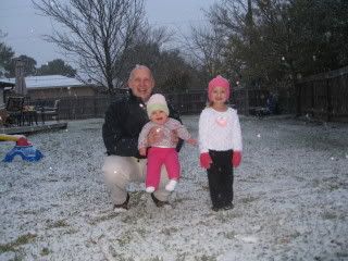 Hey! Don't judge...it's Texas! We get excited about this white stuff that falls from the sky. So while we may not get a White Christmas, this was still pretty enjoyable today. We woke up to a small snowfall. I got Brooke up and let her play it in just a bit before school, just knowing it would melt by 10a. It did. Oh well.....