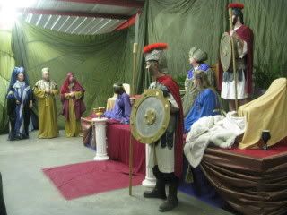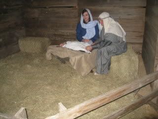 And of course, the stable with Mary, Joseph, and Baby Jesus - a REAL baby, not a doll - (the animals were just out of the camera's shot, but they had all the animals there too!)...