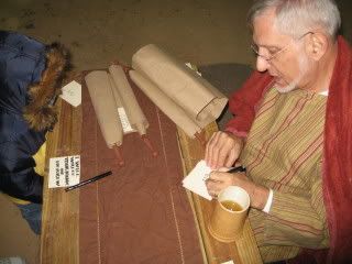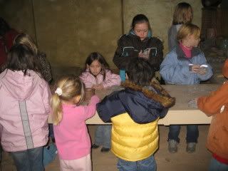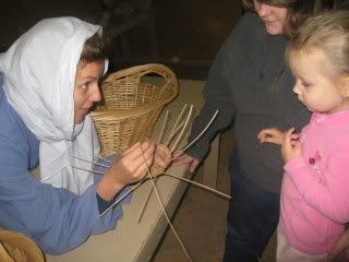 Last night, we drove the hour drive to go take a "Journey Through Bethlehem." They had the county's fairgrounds set up to where you got there and Herod was telling the wise men to go find the Baby Jesus and bring word back to him where He was. Then you followed the Wise Men through to Bethlehem and at your own leisure, you got to travel through the city with people doing trades and such and of course, at the end, see Mary, Joseph, and Baby Jesus. It was really neat and it really brought the whole thing to life, especially for Brooke. Here she is learning to weave a basket...