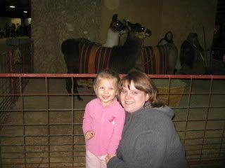 Me and Brooke in front of the local Llamas. She loved the thought of picturing them in their red pajamas (from the book Llama llama, Red pajama, a really cute book by the way) ....