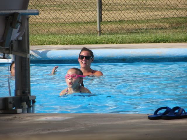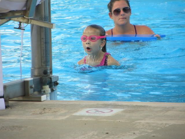 She still struggles with diving...getting her head in first. So she did get to work on that some too...and Ms Alex is great and actually got out of the water to help her. :)
