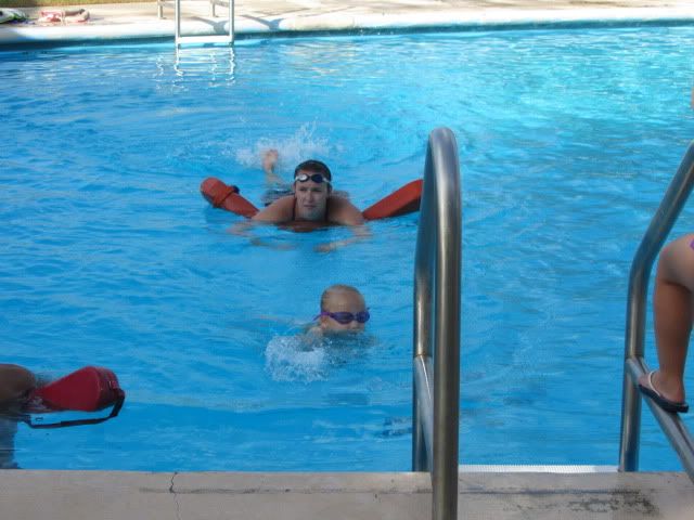 Here she is perfecting her breast stroke (which was one of the things she got waaaay better on!)....