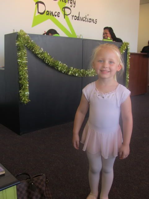 Anyway, just a couple of pics. I watched the whole time. They were so cute. 13 in her class...and they all did sooo good, considering their ages! They all participated, no crying, and did everything asked of them. Of course, in my opinion, Brenna did the best. :) She did everything as if she had done it all before. Plus she was the only one who went over, changed her shoes (into tap shoes) by herself, put her bag back up, and actually finished first. I was pleasantly surprised at how attentive she was and how well she participated. And she can't wait to go back!