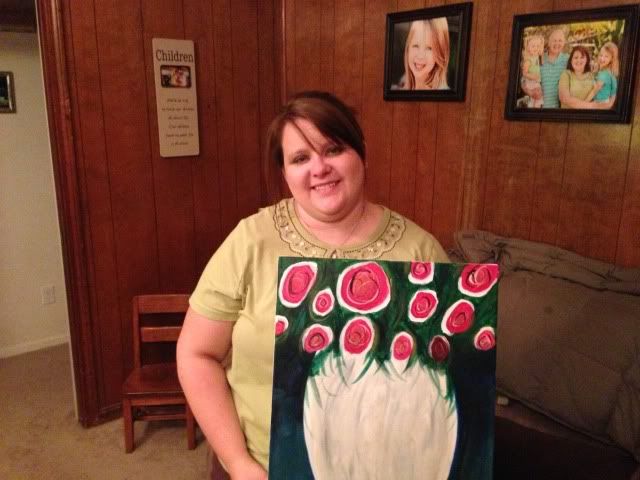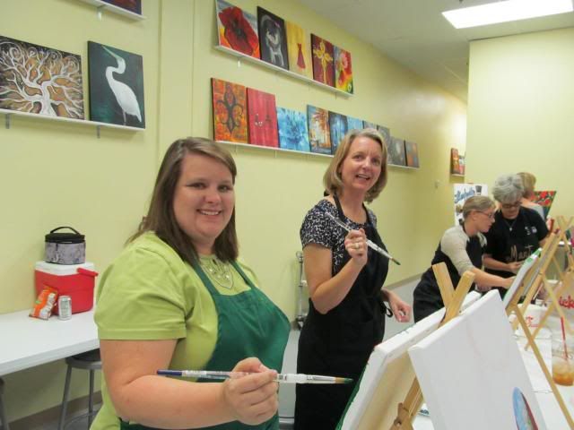 Brooke's school did a profit share one night there so I signed up with some of my favorite mom friends from school. It really was a lot of fun! I didn't suck quite as bad as I thought I would... I only wish we had gotten a better painting choice. A lot of the paintings they do are REALLY good. And when I saw what we were doing...welllll....I was less than impressed. But oh well. For a cause, right? So all things considered I guess mine turned out ok. I'll be auctioning it off to the highest bidder. ;P