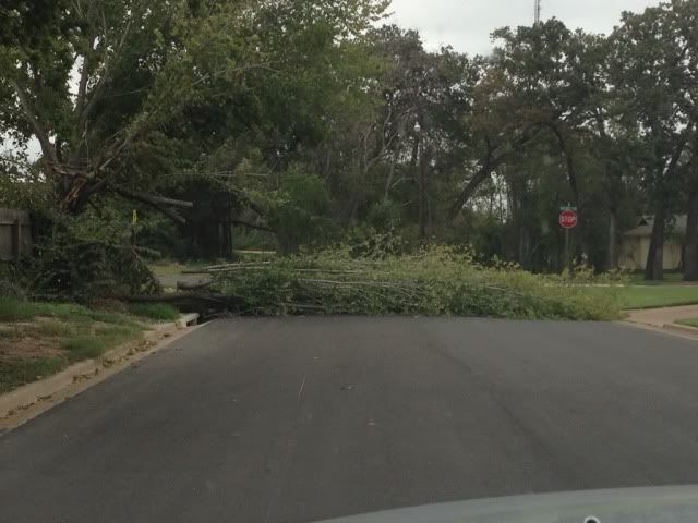 Getting out of the house one day last week (remember that cool front I mentioned), we drove around and got stopped short when a complete tree covered the road in front of our house! I guess it got knocked down with some of the wind or something...I dunno. Crazy!