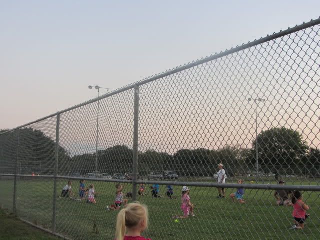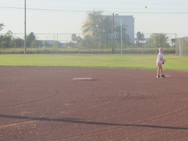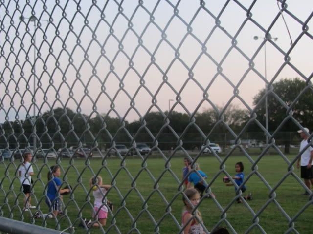 Now, Brooke ended up on a pretty good team I guess. She's been practicing for 2 1/2weeks now (one downside to this older league - later practices! Which is rough!) and no games yet. But they are the Jaguars. (haha - kind of coincidental..her school are the Jaguars too!). There are 12 girls on her team..which is kind of a lot I think? But they were short on coaches for the Fall league. She's pretty good at batting and fielding... catching (like, over hand catching) could use some work, BUT! The girl's got an ARM! Seriously.... she can throw the ball like nobody's business. Hrm. Future pitcher? Maybe.... Its quite surprising how well her tiny little self can throw! Even her coaches have commented....