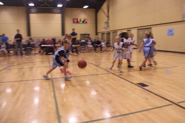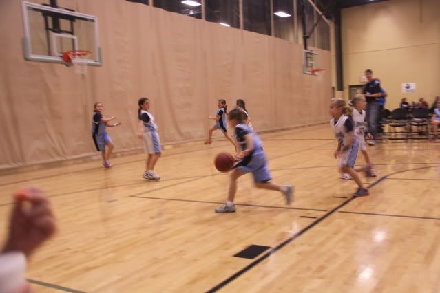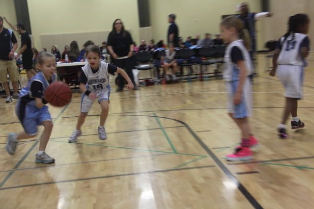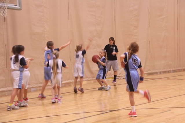 Brooke turned out to be quite the basketball star! At first she started off not wanting to be too in the game...a little skiddish about it all. But towards the end of the season, she stepped it up a notch! She started dribbling faster, making some fast breaks down the court, would always be a team player, passing it off if she needed to (and doing GOOD passes - while most of the other girls would always pass it away, Brooke would do a sturdy bounce pass every time getting it to her girl), and then eventually shooting often and making baskets! I was impressed with how much better she got by the end of the season. She might end up liking basketball after all! :)