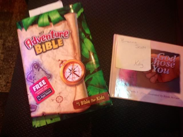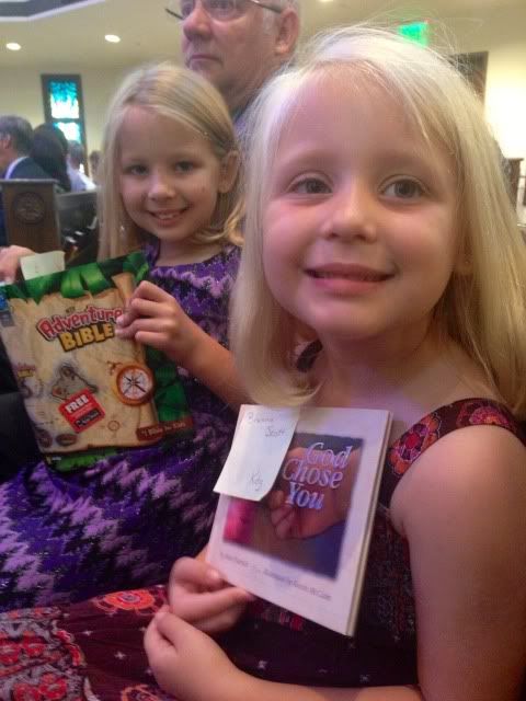 Now that school is back full force, the Sunday School at Church had a Sunday where all the grades got promoted to the next. So Brooke was in the 3rd grade class now in Sunday School as well. Along with this, certain levels of kids were recognized for their stepping stones. Kindergarteners got a book, while 3rd graders received a NICE bible. We just so happened to have one of each of these kids. ;)