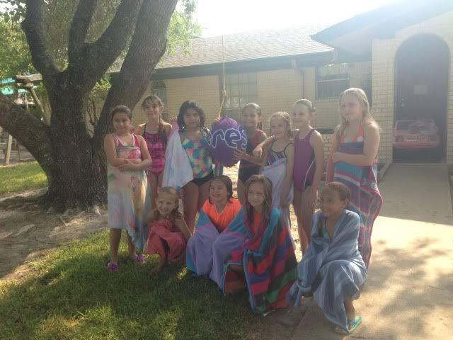 Anyway, so new year, new kids - Brooke met a new friend this year and has really hit it off with her. She is still great friends with her old friends, but apparently her and this one are great friends all of the sudden too! And I'm glad. She seems to come from a great family. A family that wouldn't allow 2 piece bathing suits at a swim party - even an all girl swim party! Now that's the kinda parent I'm appreciative of. When I got that invitation, I liked that! :)