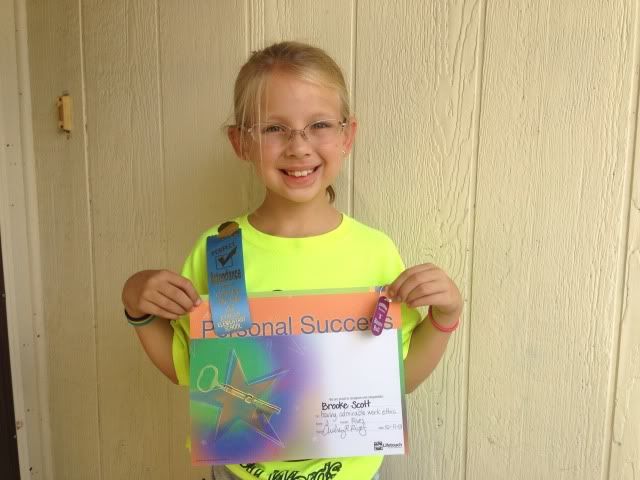 Anyway.... first six weeks, many moons ago... Brooke got All A's (which is getting harder in 3rd grade! No small feat!), perfect attendance, AND...she was awarded the Personal Success Award (only one in each class gets this) for her hard work each and every day, her diligence, and her drive to finish everything she needs to do in a timely manner. Proud mommy here!