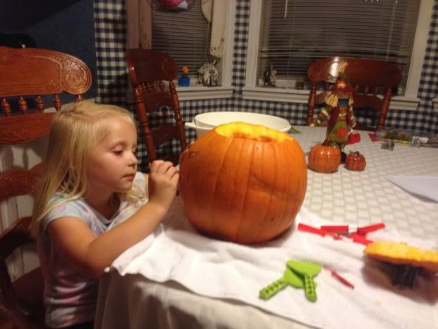 Literally the night before Halloween we bought and carved a pumpkin just for the sake of doing so (it is tradition right?). No fancy templates this time, just simple. In fact, Brenna drew the design. :)