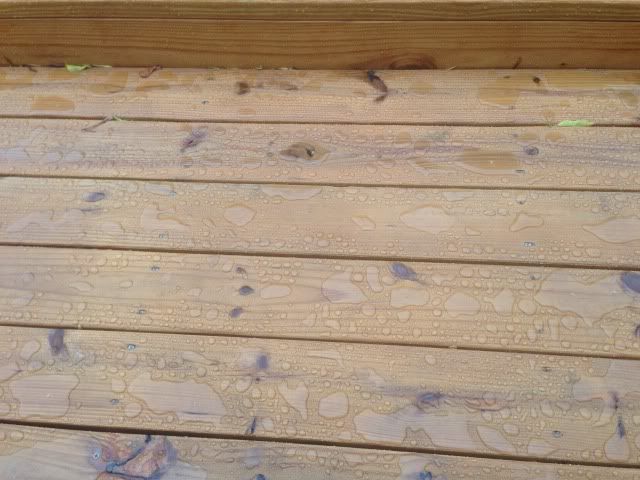 Here's how our deck stain nicely held up though! Thankful we had that put on before all these rains started! See how its bubbling up? Nice!! :)